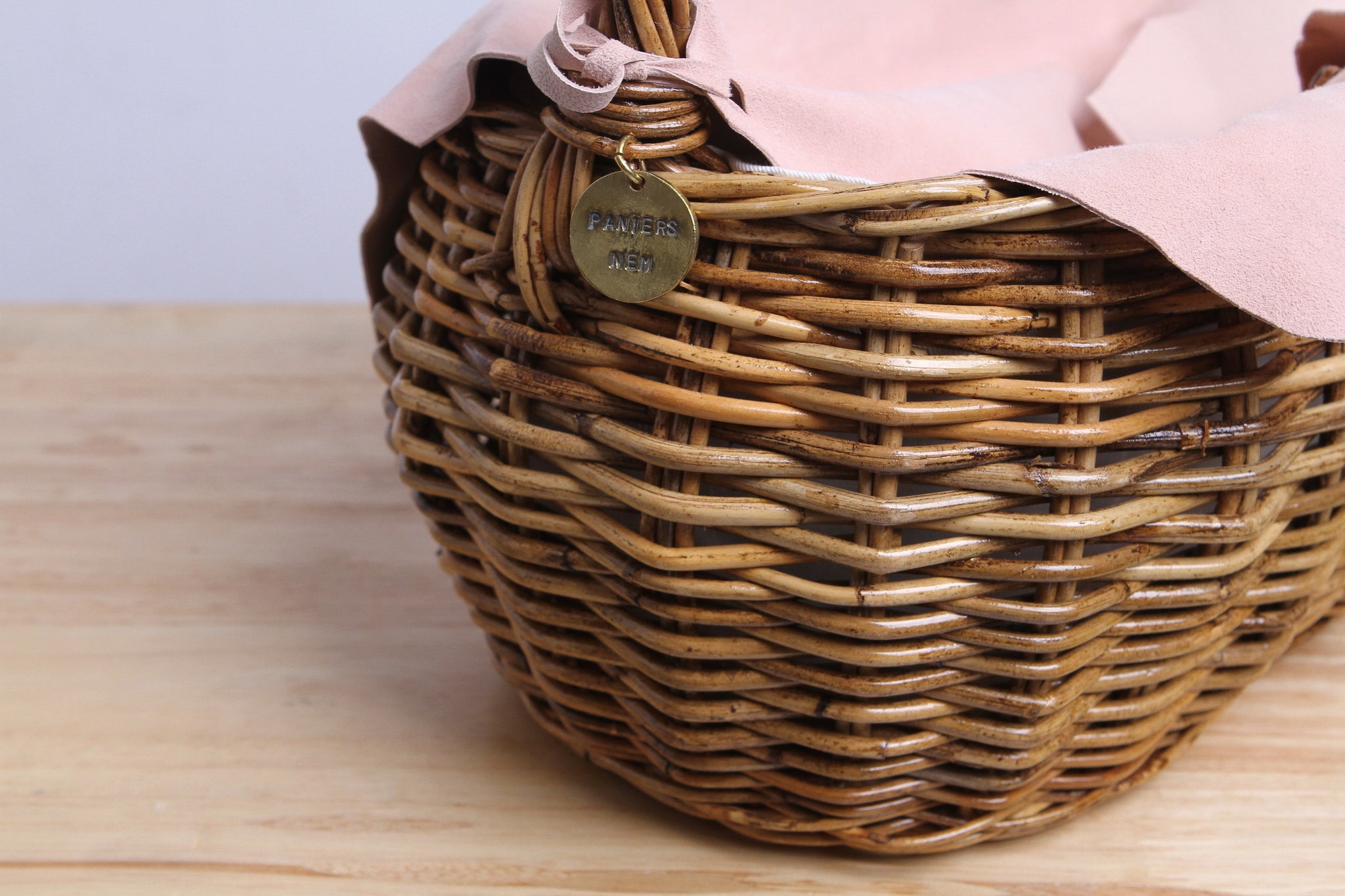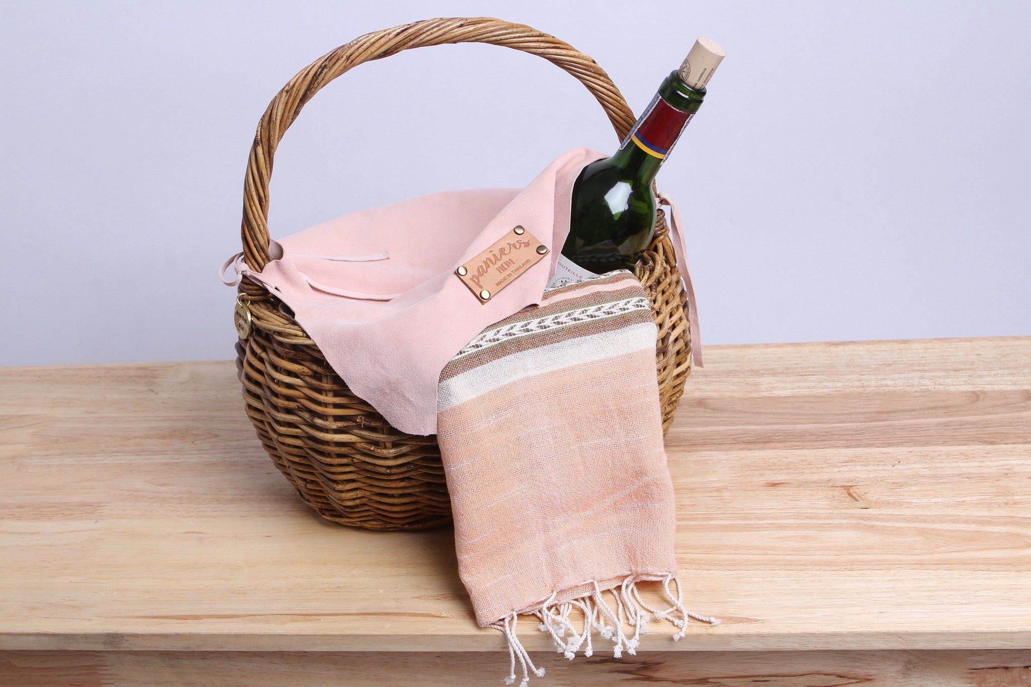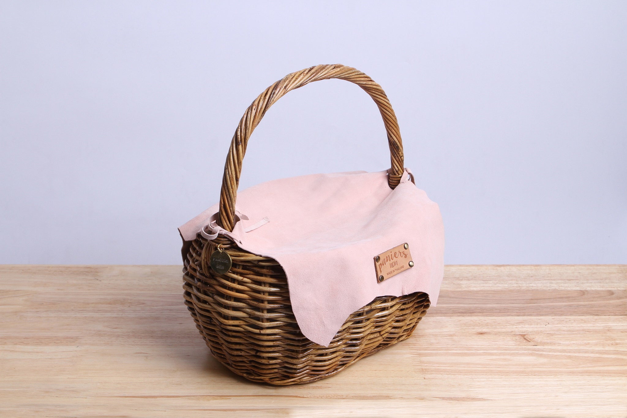 - The traditional basket usually using in household was developed the design to match the present lifestyle. A canvas support inside along with the unshaped lamb leather cover and holder.