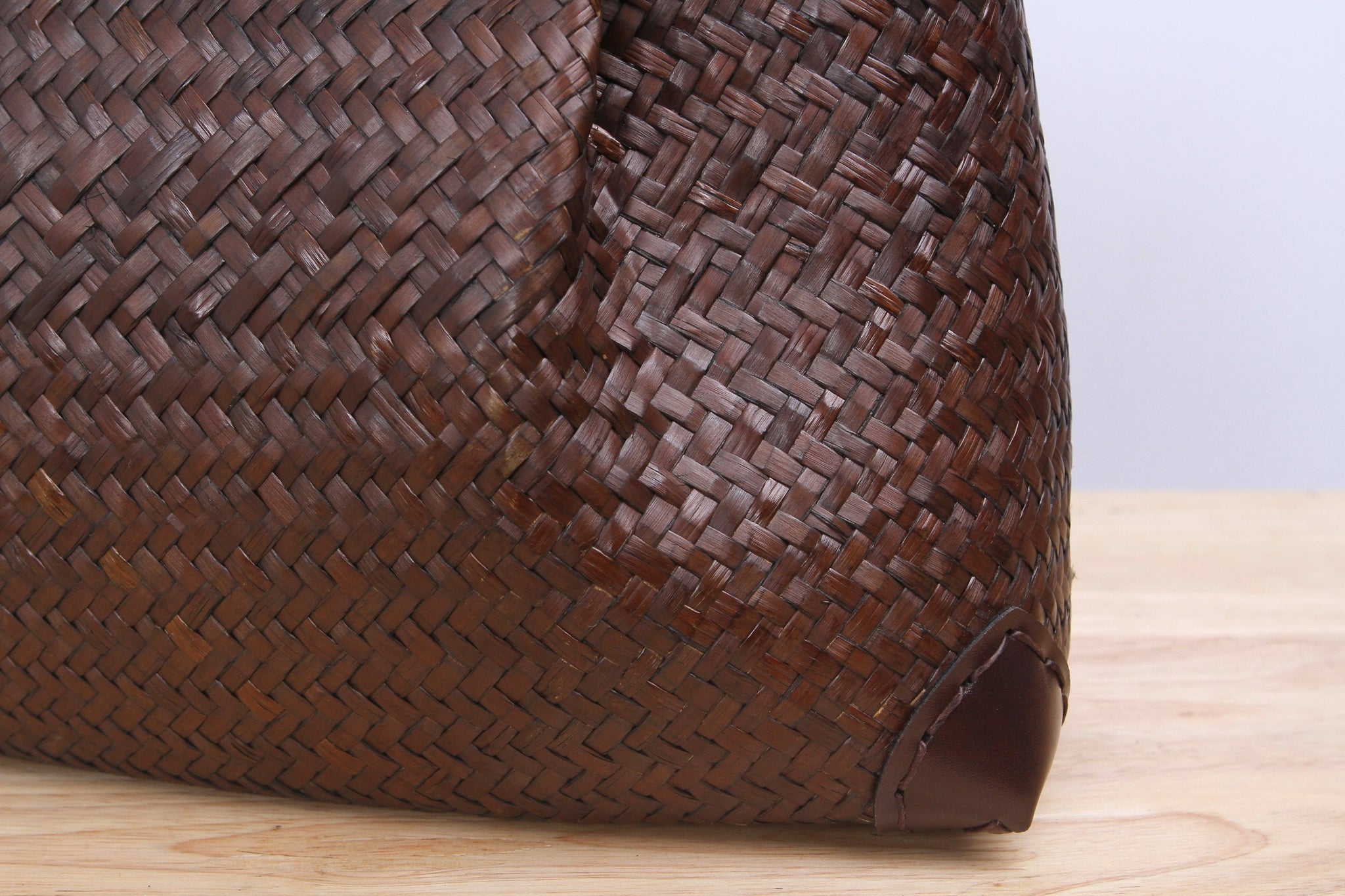 - In collaboration of Thai designers and artisan perfectly creates a woven dyed Seagrass incorporated with a wooden handle. With effort and time placed into creating these Exquisite design and quality for modern consumers.