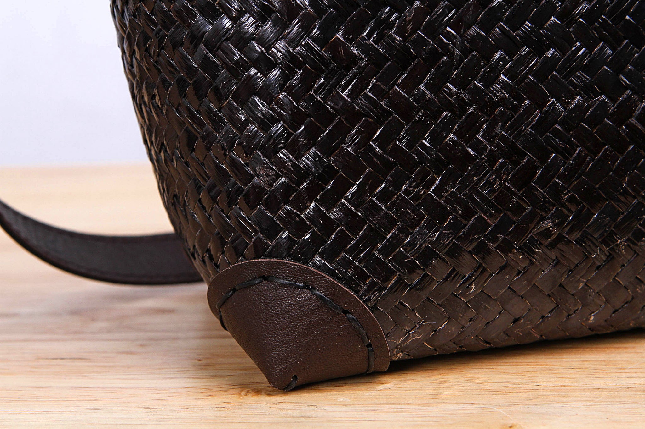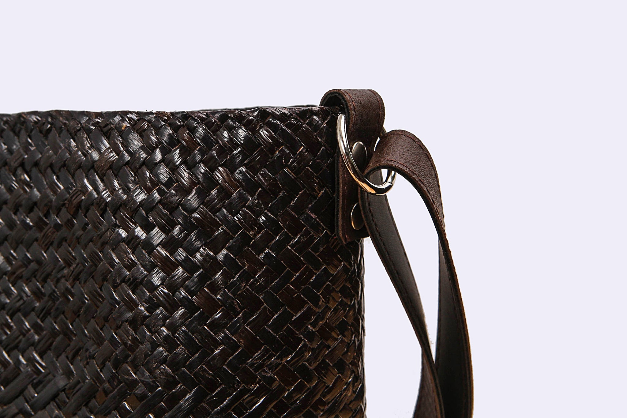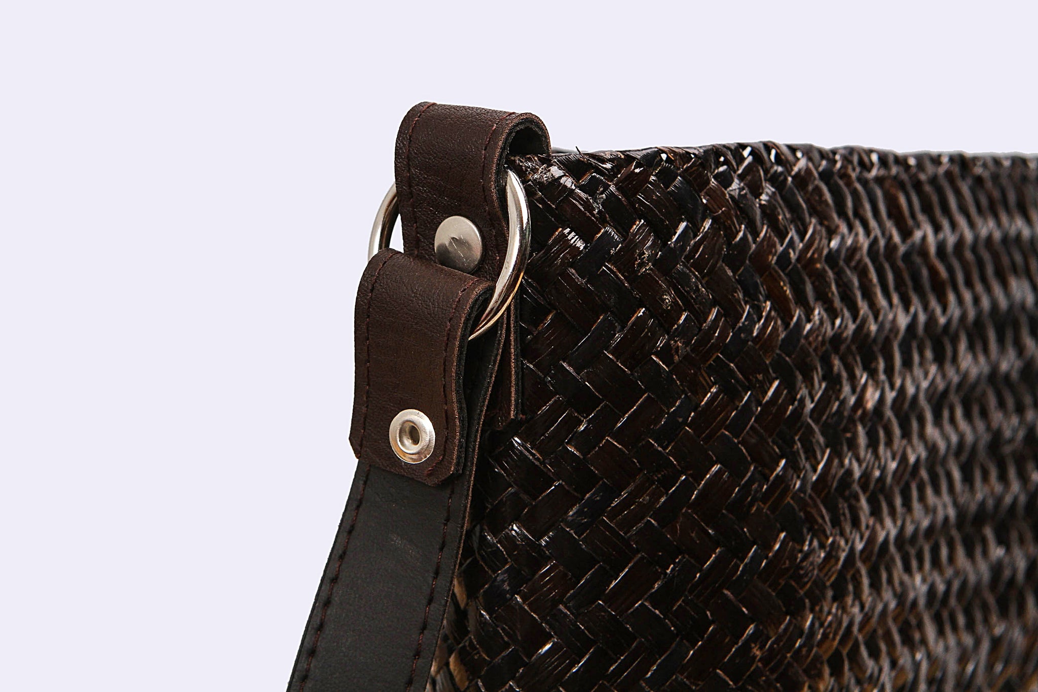 - In collaboration of Thai designer and artisan creates a woven dyed sedge incorporated with leather strap and using fabric coating for the interior of the bag. Exquisite design and quality for modern consumers decorated by little fabric flower.