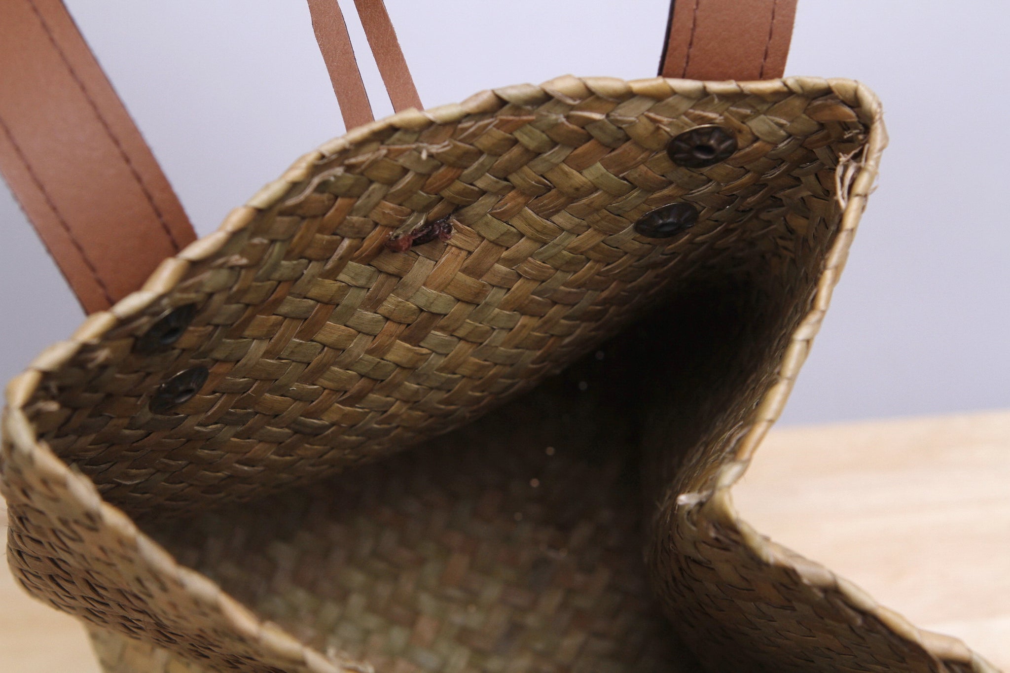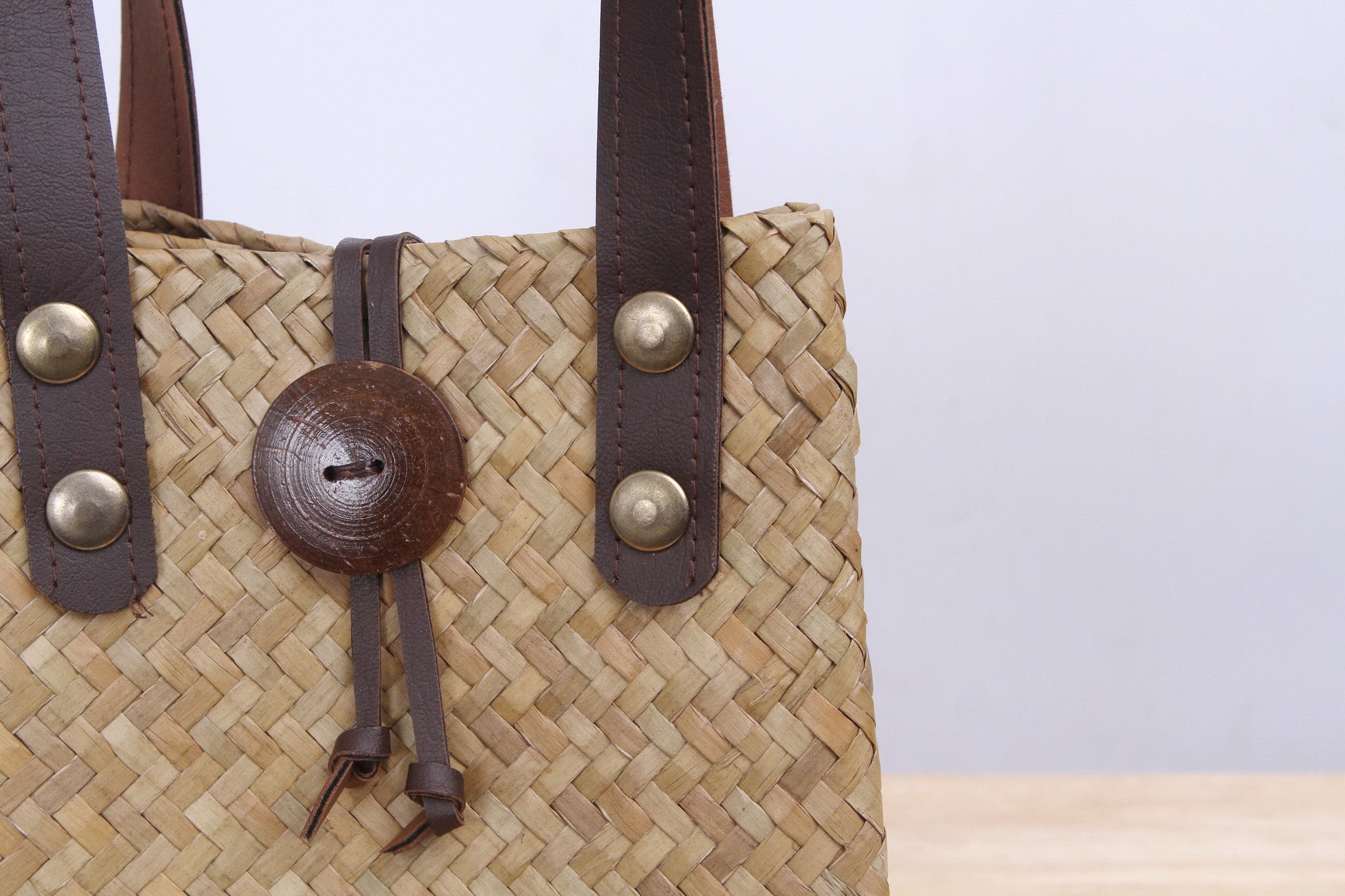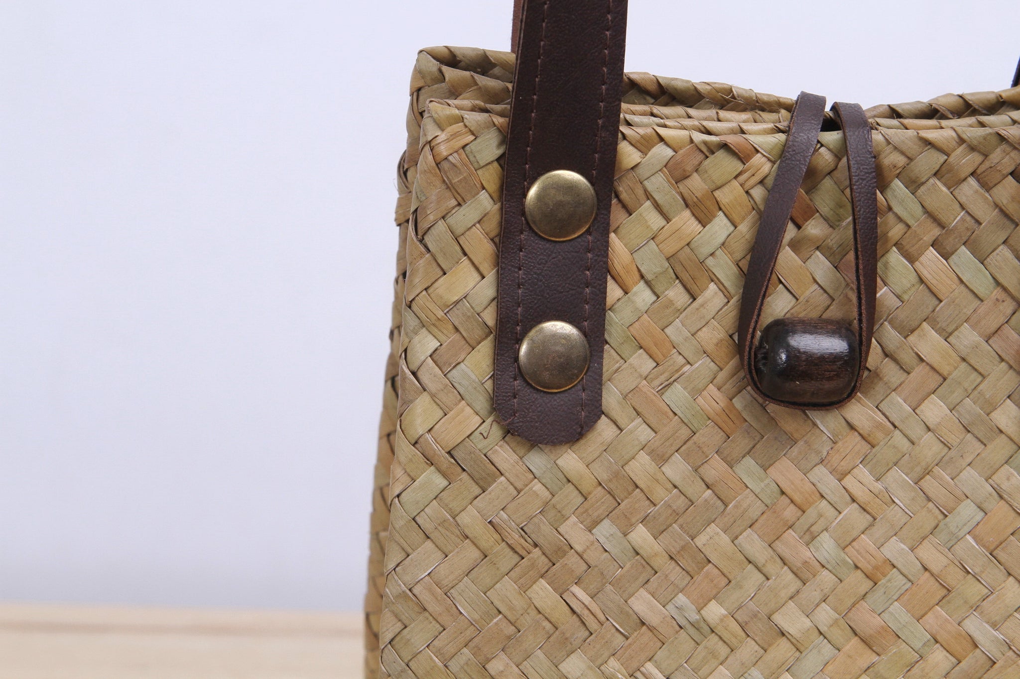 Short Wicker Tote bag (Light Brown)