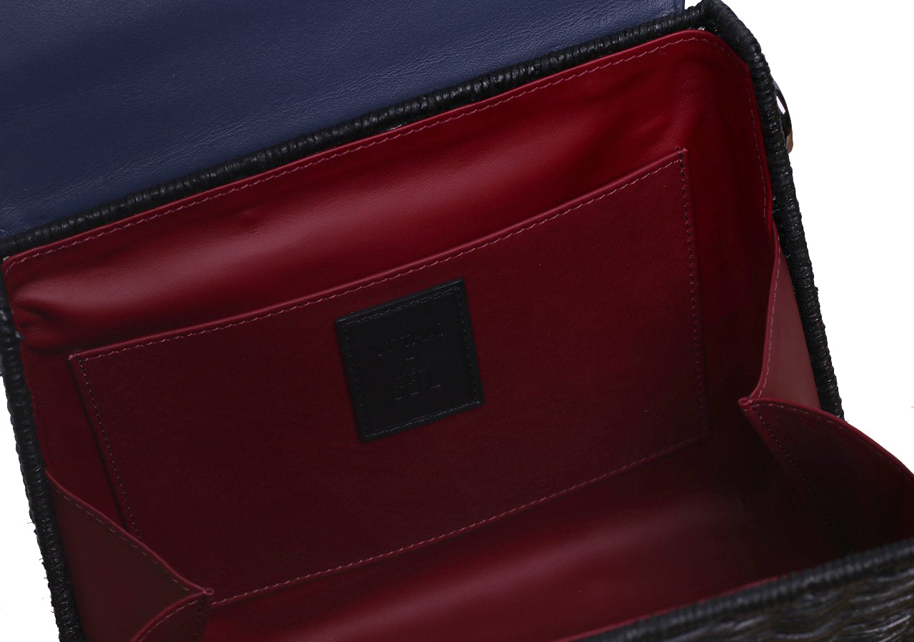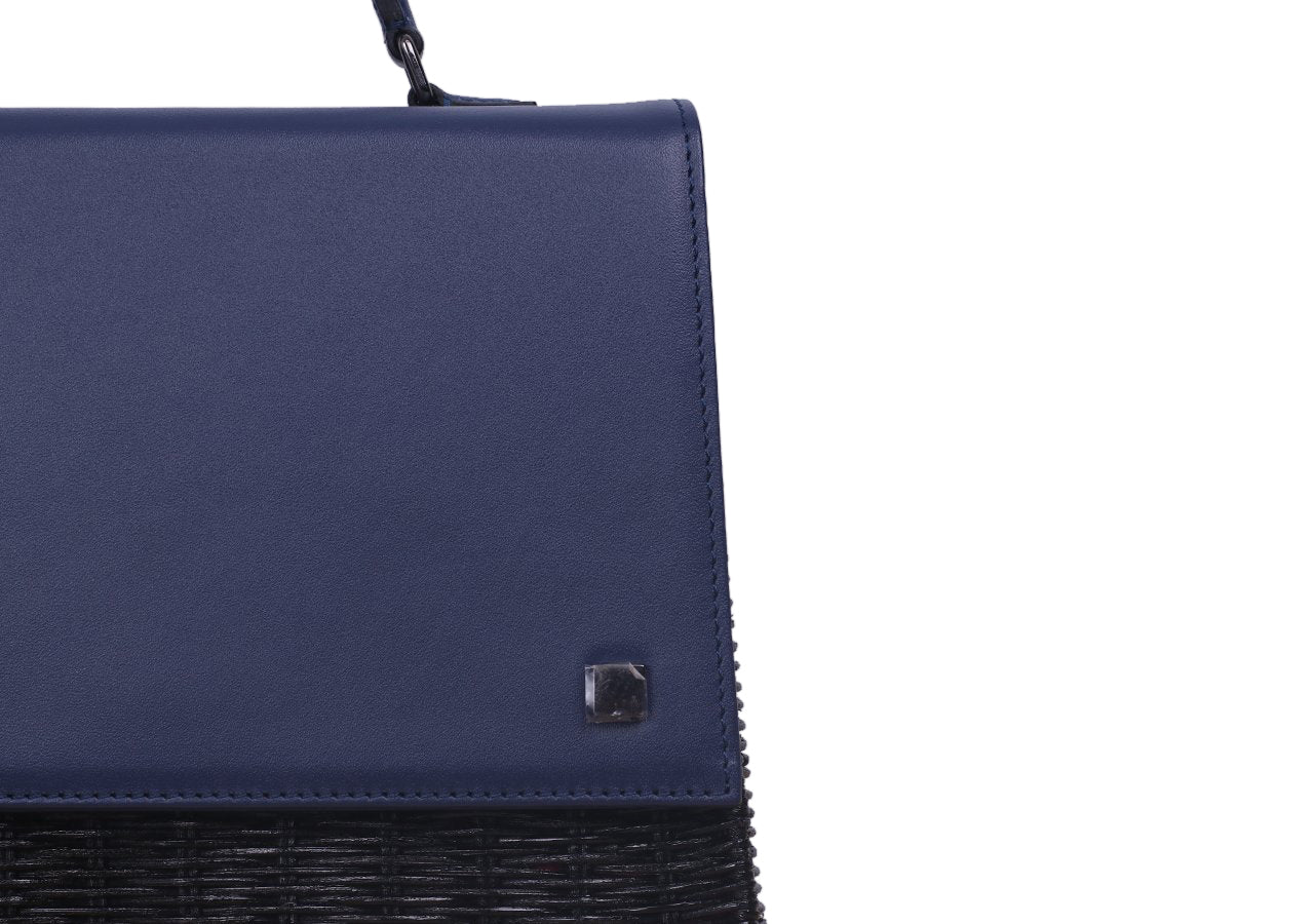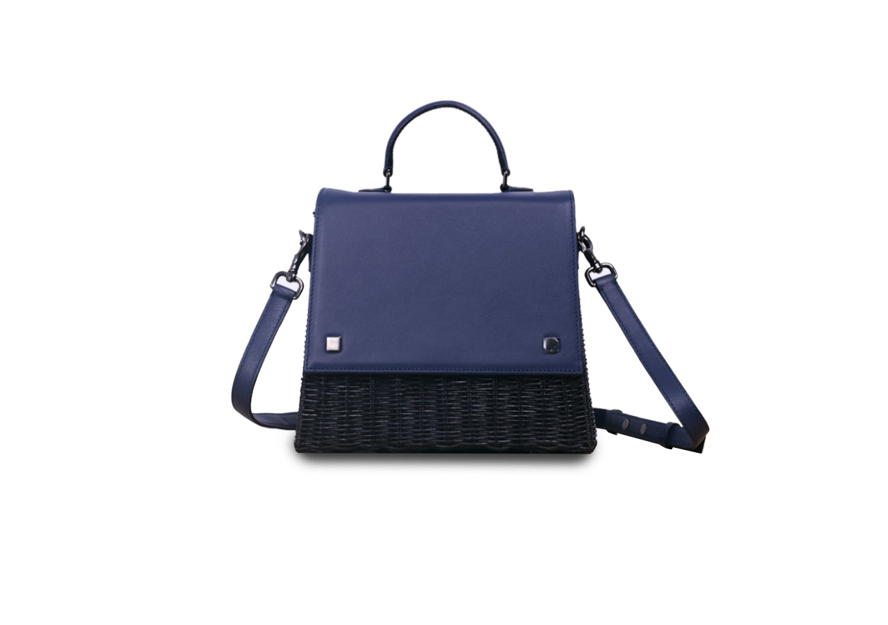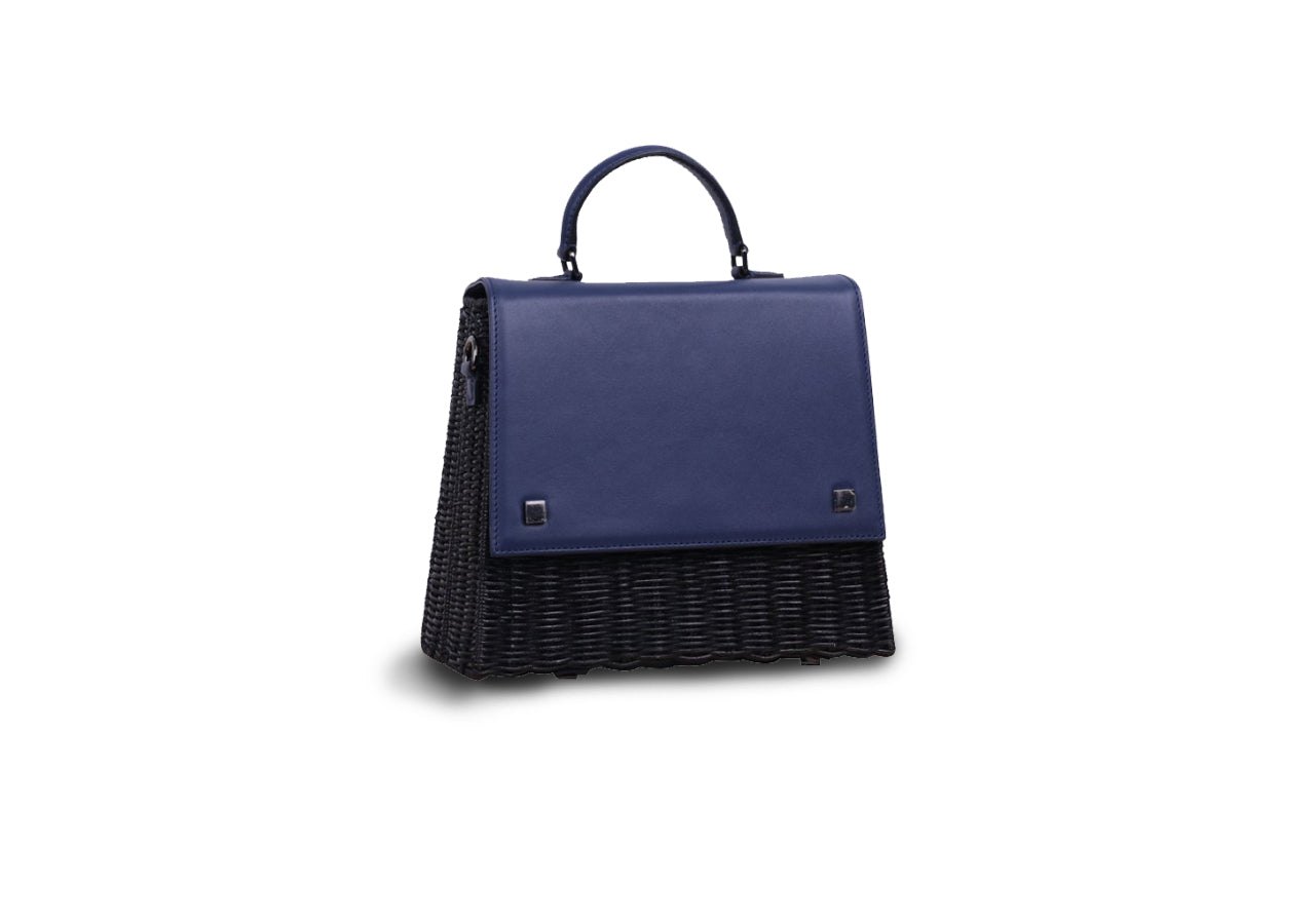- By adding a few contemporary elements to the traditional wickerwork we have transformed the humble material into a modern and sleek handbag. Leather flap and metal studs adds an eye-catching detail to the design and the interior of the bag is intricately lined with premium grade leather.