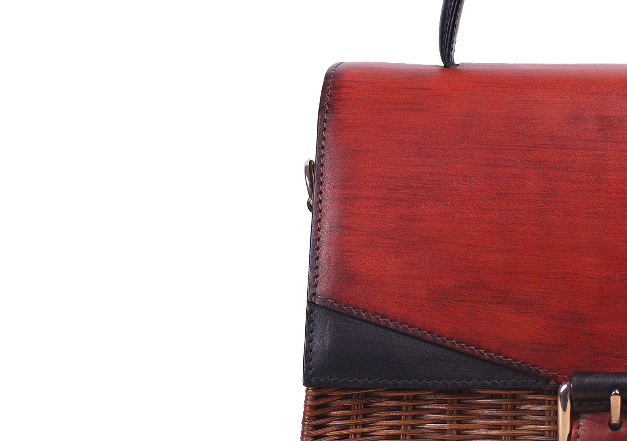 - In collaboration with our partner at Mango Mojito, we have transformed the traditional material into a modern and sleek handbag. Patina flap and buckle adds an eye-catching detail to the design and the interior of the bag is intricately lined with premium grade leather.