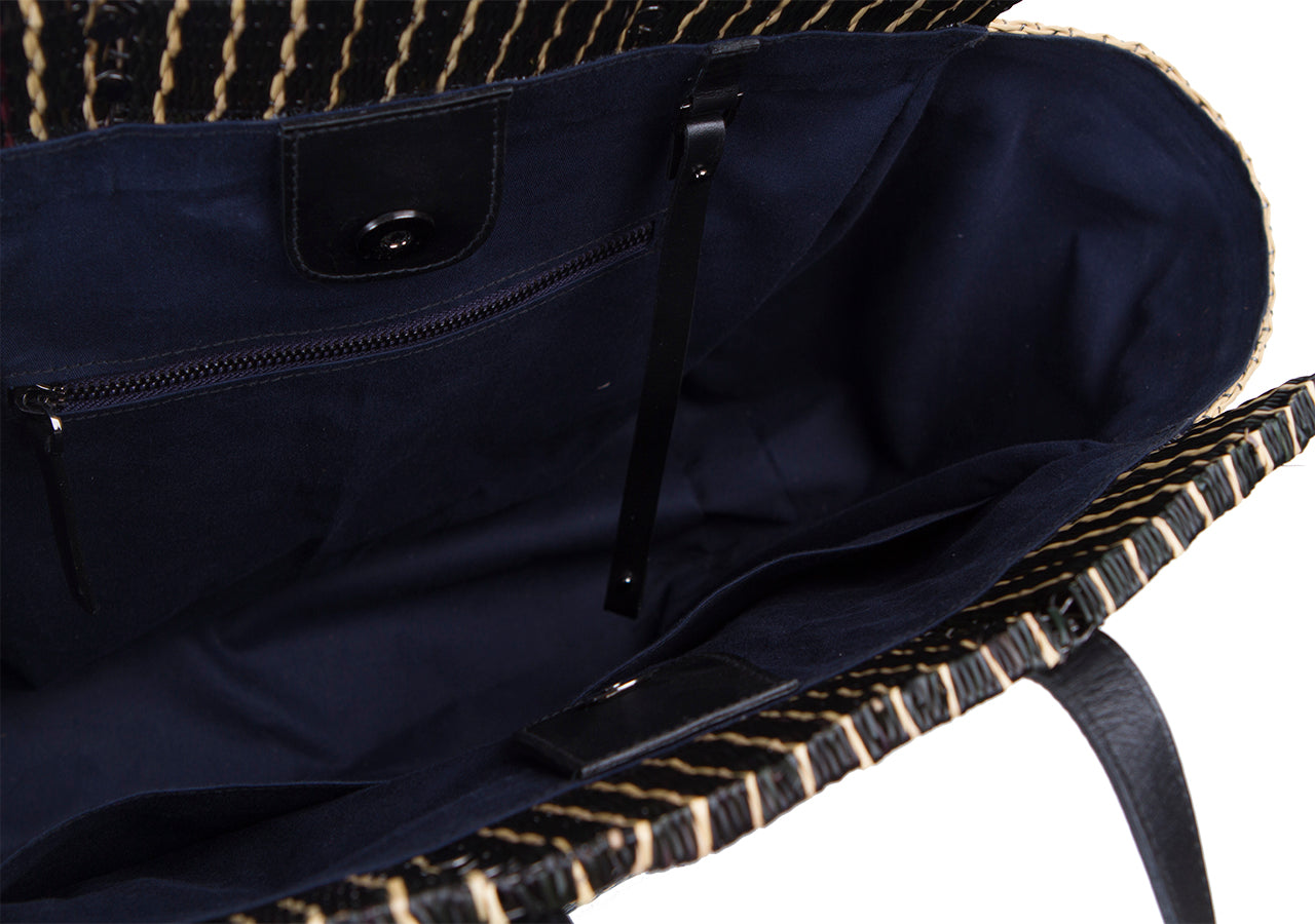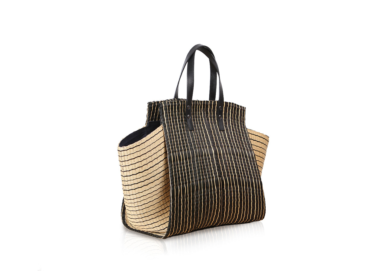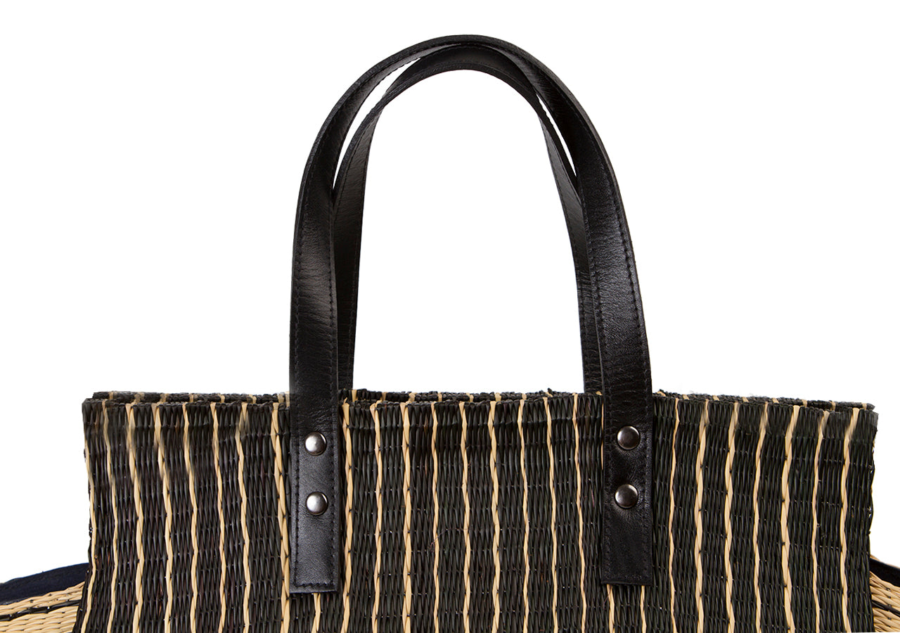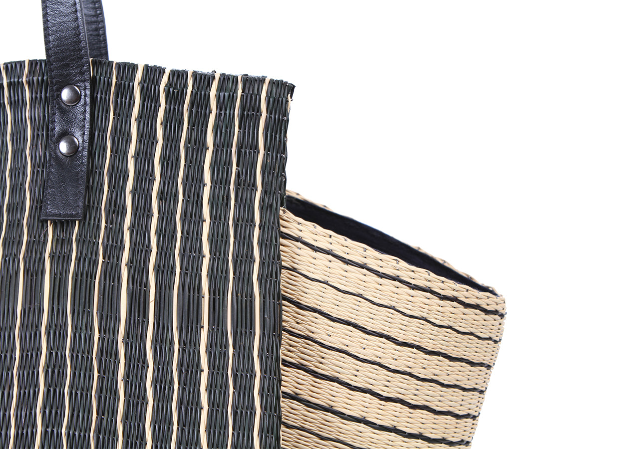 Tote bag is one type of woven tote from communities in Roi Et, which the community has inherited since ancestors. This tote bag is inspired by the folding technique using the structure of the bag, the design of the bag body and the wing of the bag are smooth as minimal style. There is a modern style that still remains charming. Tote Bag handle made from genuine cowhide leather. It’s suitable for women for in daily life usage.