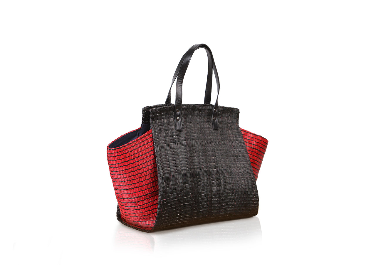 Tote bag is one type of woven tote from communities in Roi Et, which the community has inherited since ancestors. This tote bag is inspired by the folding technique using the structure of the bag, the design of the bag body and the wing of the bag are smooth as minimal style. There is a modern style that still remains charming. Tote Bag handle made from genuine cowhide leather. It’s suitable for women for in daily life usage.