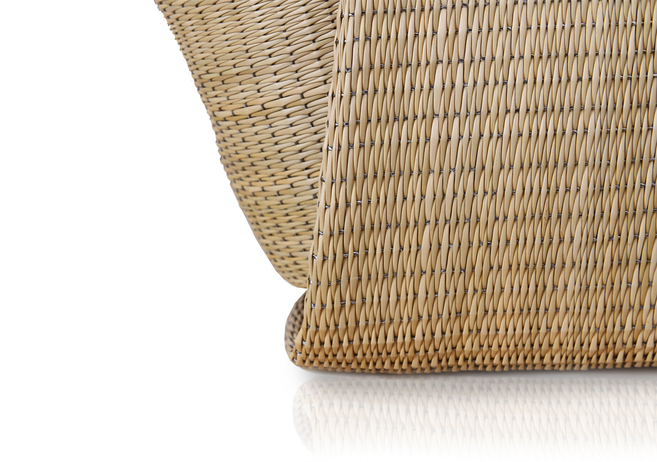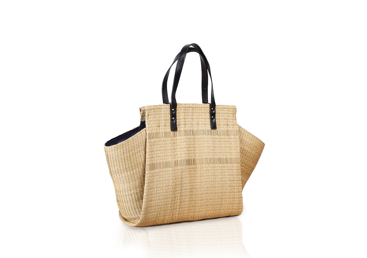Tote bag is one type of woven tote from communities in Roi Et, which the community has inherited since ancestors. This tote bag is inspired by the folding technique using the structure of the bag, the design of the bag body and the wing of the bag are smooth as minimal style. There is a modern style that still remains charming. Tote Bag handle made from genuine cowhide leather. It’s suitable for women for in daily life usage.