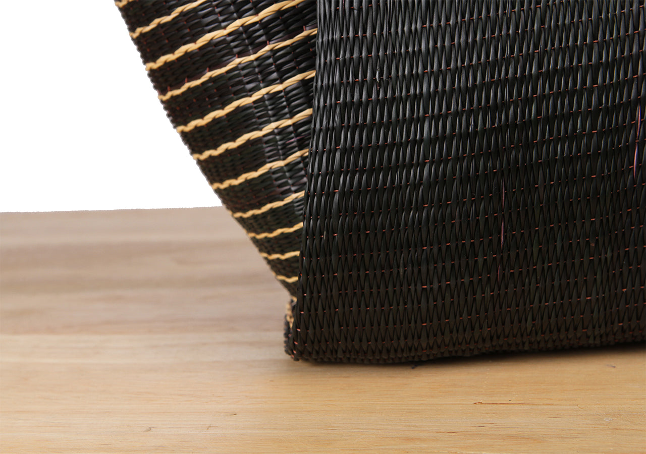 Tote bag is one type of woven tote from communities in Roi Et, which the community has inherited since ancestors. This tote bag is inspired by the folding technique using the structure of the bag, the design of the bag body and the wing of the bag are smooth as minimal style. There is a modern style that still remains charming. Tote Bag handle made from genuine cowhide leather. It’s suitable for women for in daily life usage.