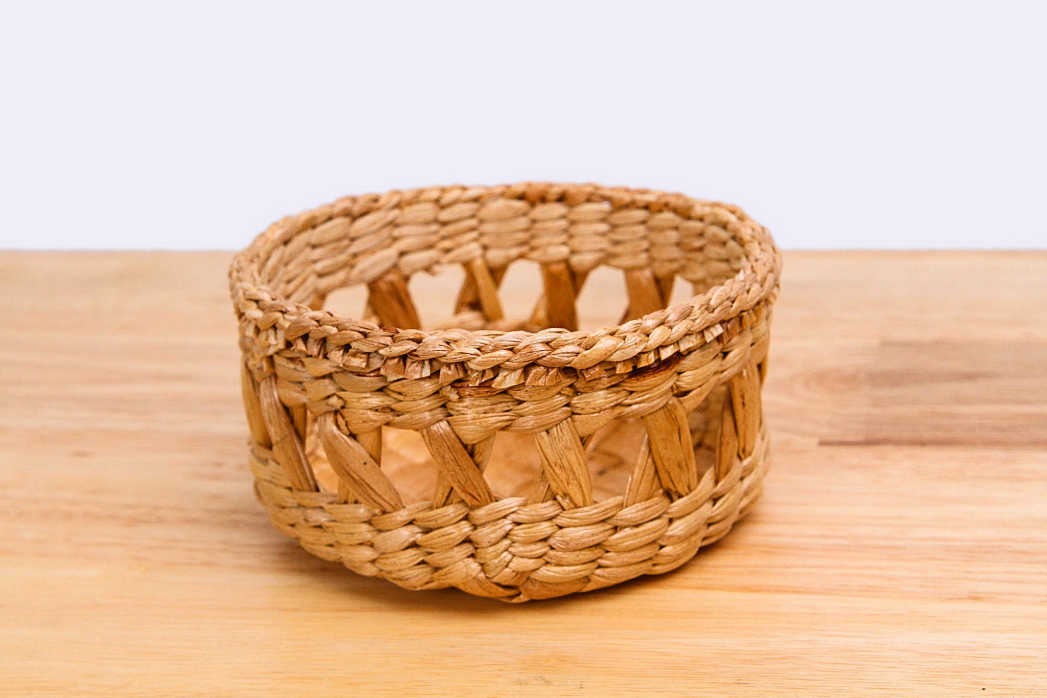 - A mini straw wicker container perfectly for accessories or miscellaneous items.